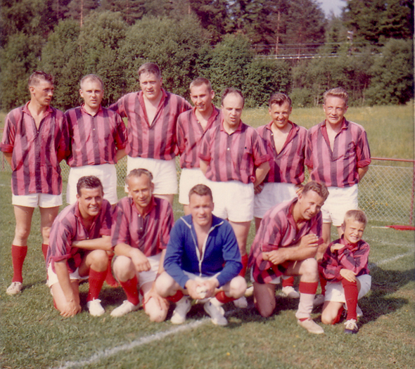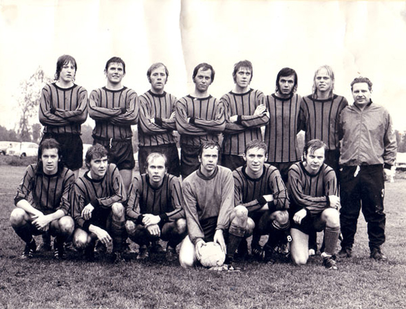 Håkan Öman, Per Andersson, massör, Hasse Gustavsson, Donny Friberg, Björn Moström, Leif Thid (hette Johansson då), Daniel Andersson och Lars-Åke Carlsson